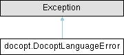 docopt.DocoptLanguageError Class Reference