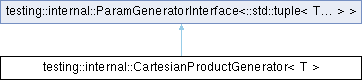 Inheritance diagram for testing::internal::CartesianProductGenerator< T >: