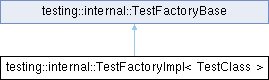Inheritance diagram for testing::internal::TestFactoryImpl< TestClass >: