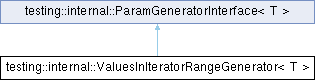 Inheritance diagram for testing::internal::ValuesInIteratorRangeGenerator< T >: