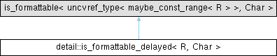 Inheritance diagram for detail::is_formattable_delayed< R, Char >:
