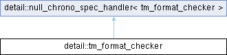 - Public Member Functions inherited from detail::null_chrono_spec_handler< tm_format_checker >